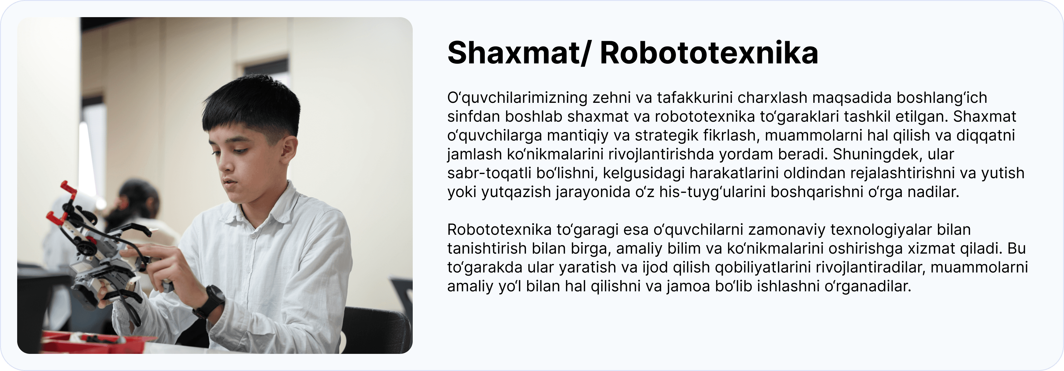 Chilonzor maktabi – zamonaviy va innovatsion ta’lim tizimiga asoslangan xususiy ta’lim muassasasi bo‘lib, yosh avlodni har tomonlama rivojlantirishga qaratilgan. Bu maktablar yuqori sifatli ta'lim va tarbiya orqali o'quvchilarning ilmiy, intellektual hamda ma'naviy kamolotiga alohida e'tibor beradi.